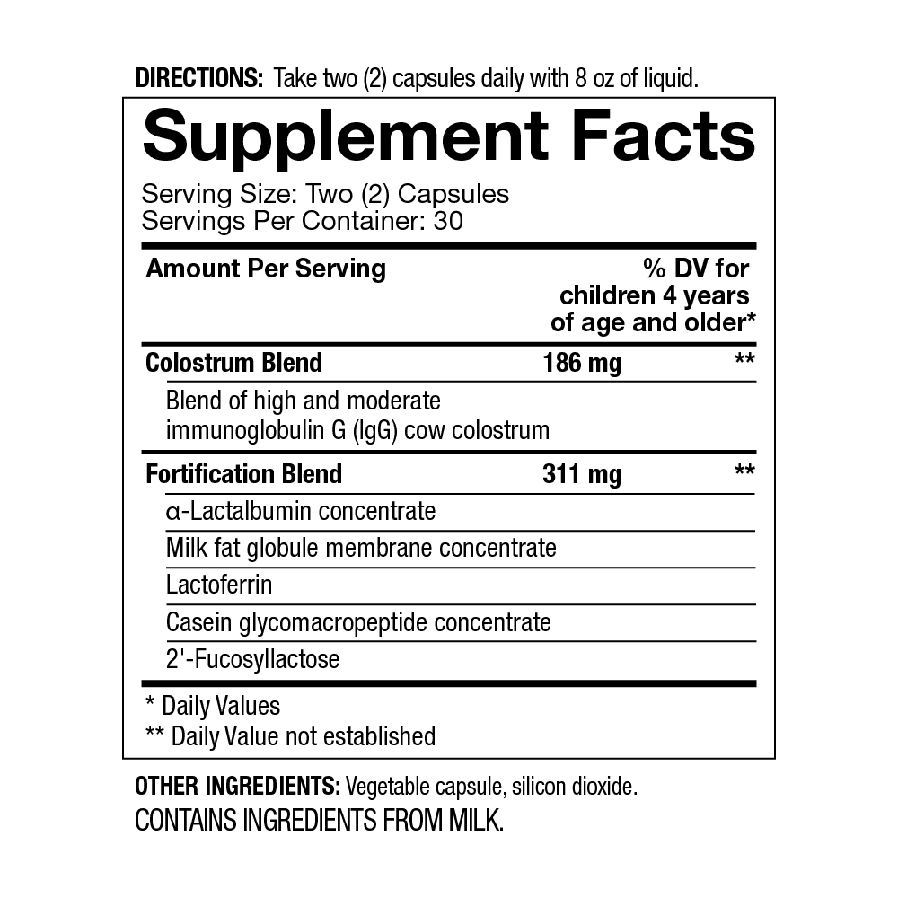 Key Ingredients: Fortified Colostrum 4Life.